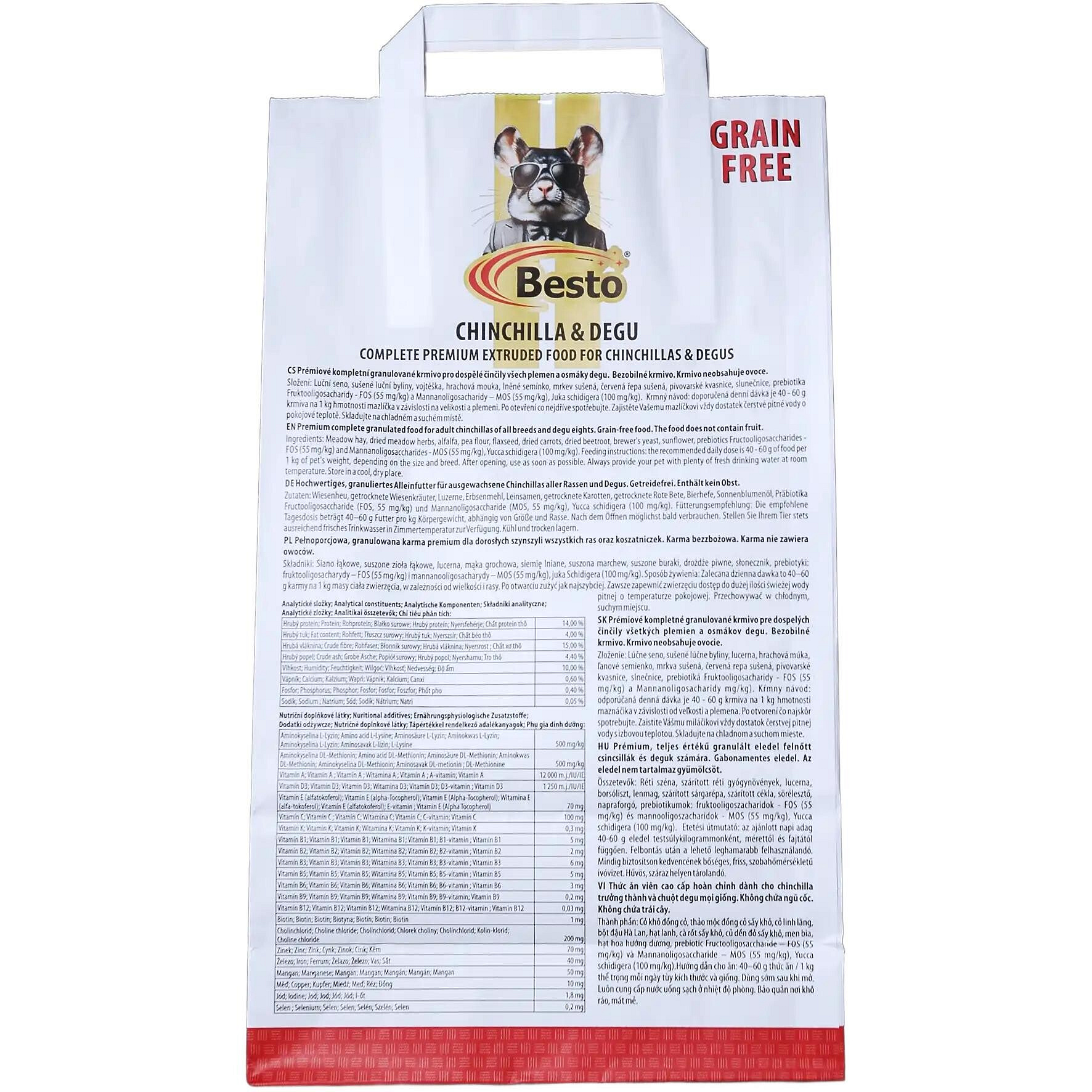 EN Premium complete granulated food for adult chinchillas of all breeds and degu eights. Grain-free food. The food does not contain fruit.