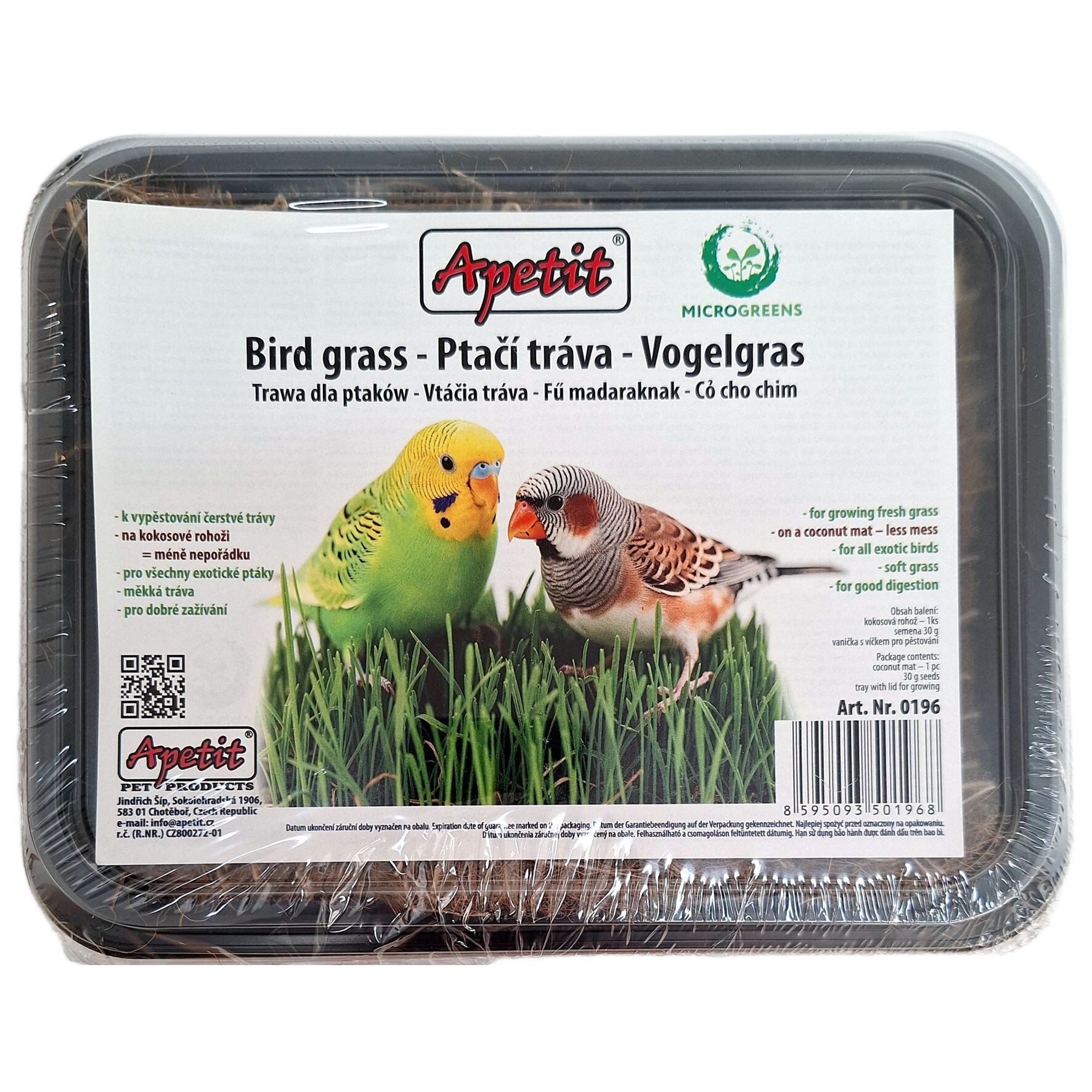 - k vypěstování čerstvé trávy, na kokosové rohoži – méně nepořádku; pro všechny exotické ptáky; měkká tráva; pro dobré zažívání